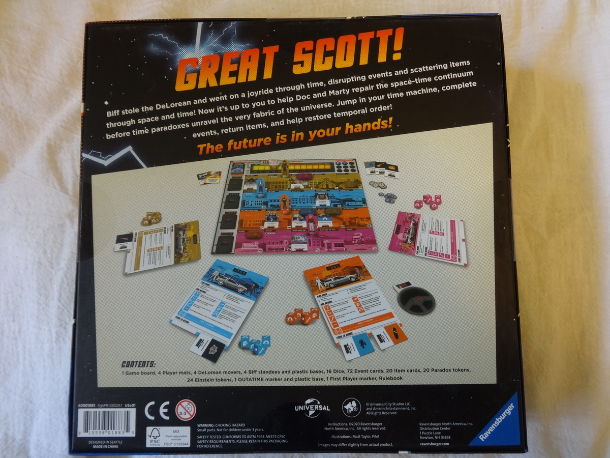 I've played this game, and it's cool (and I'm not even a fan of the movie). All players work together to help Marty and Doc Brown fix history before Marty is erased from the time line. Getting the DeLorean up to speed isn't too difficult, but getting Biff out of the way so Marty's parents can fall in love is tougher. And then there's that pesky family photo that keeps fading away...