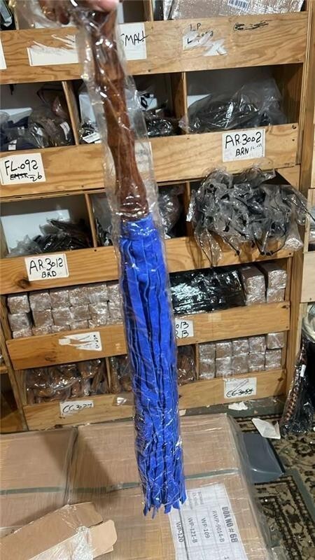Includes 50 evenly cut blue leather tails, securely attached for consistent appearance and structure.