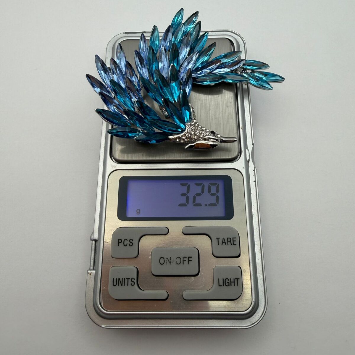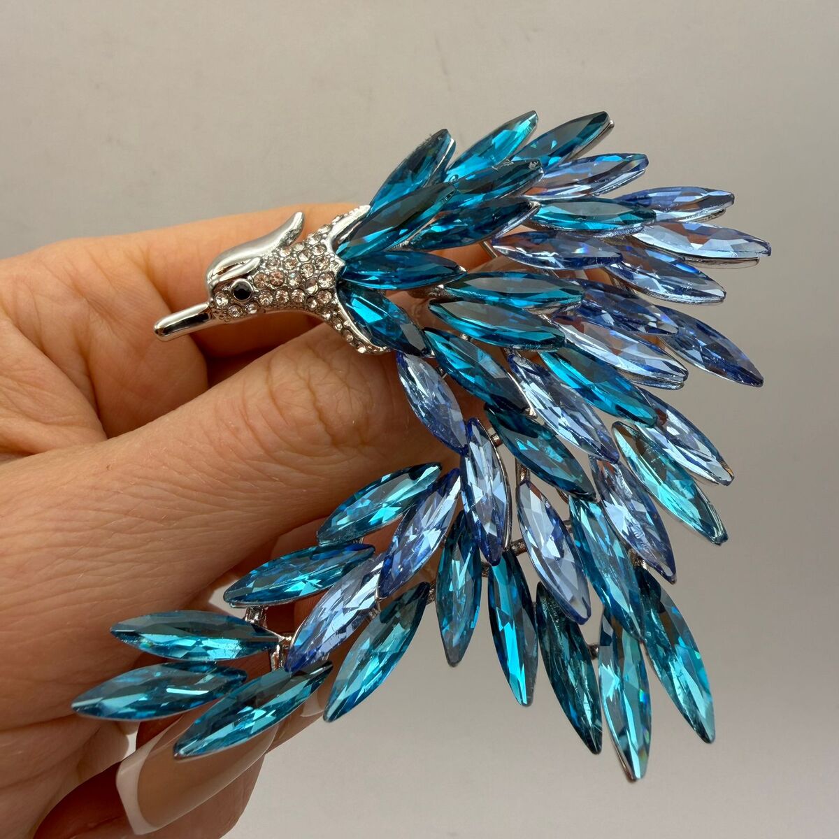 A breathtaking blue crystal bird brooch designed to stand out and capture attention instantly.