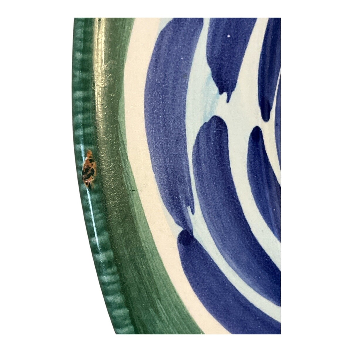 Good condition with light wear consistent with age. Small glaze chip on rim as shown. No cracks.