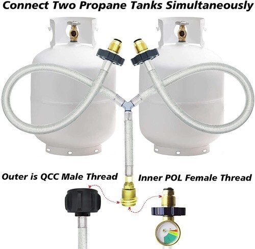 Connect two propane cylinders at the same time for your appliance during using the propane grill, heater, fire pit, stove etc