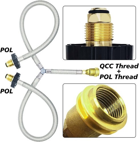 29" Stainless Braided Hose Y Splitter Dual Propane Tanks Convert Adapter POL QCC