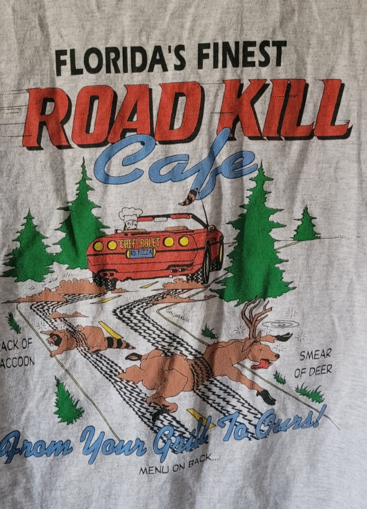 VTG Men's Sherry's T-Shirt Size XL Grey Road Kill Cafe Vacation Memories