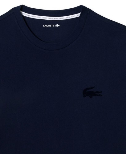 Lacoste's loungewear essential, a crewneck cotton T-shirt, makes a comfortable addition to your at-home wardrobe for day and night.