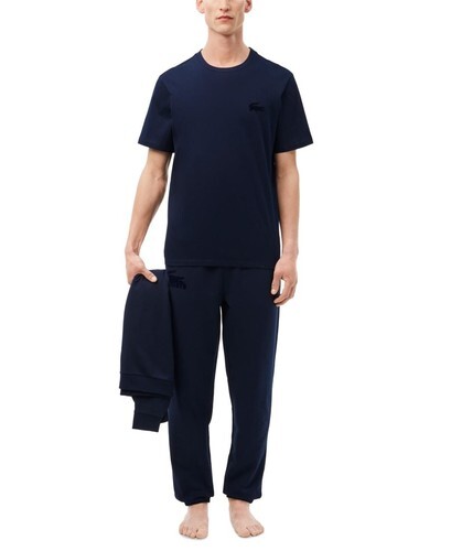 Lacoste Men's Cotton Short-Sleeve Crewneck Sleep T-Shirt - Navy-Large