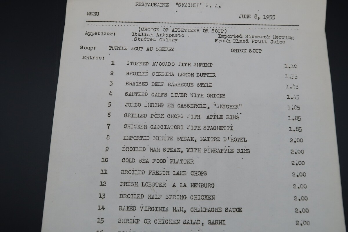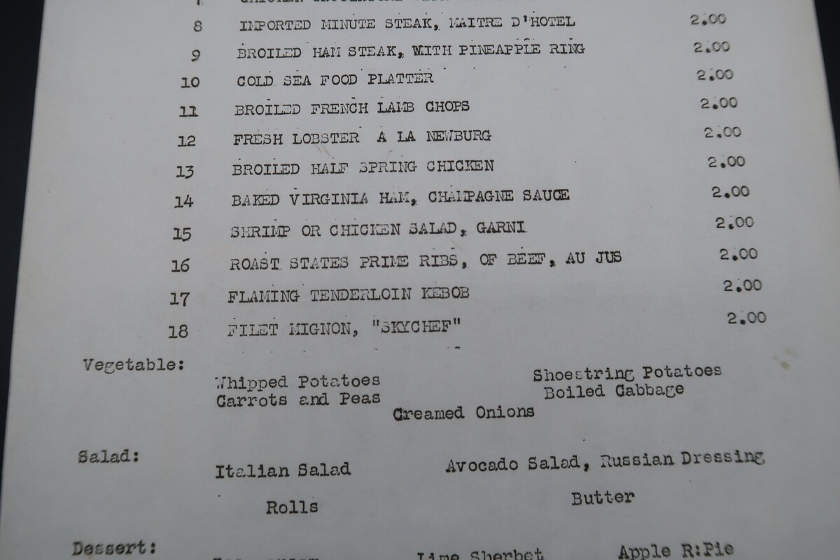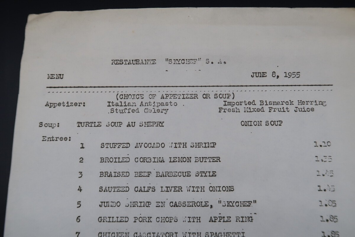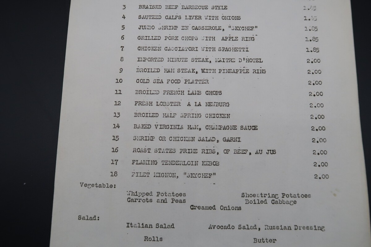 Vtg Restaurant Skychef SA Stapleton Airfield Denver CO '55 Airport Ephemera Menu