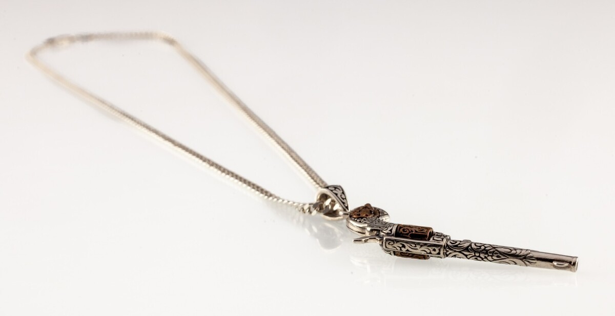 Unique Sterling Silver Pistol Revolver Pendant with 22" Silver Chain