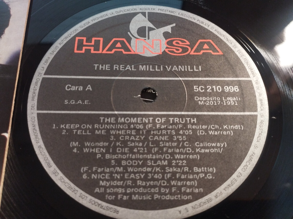 Milli Vanilli The Real Moment Of Truth 1991 Hansa - LP vinile 12 " VG/VG 3T