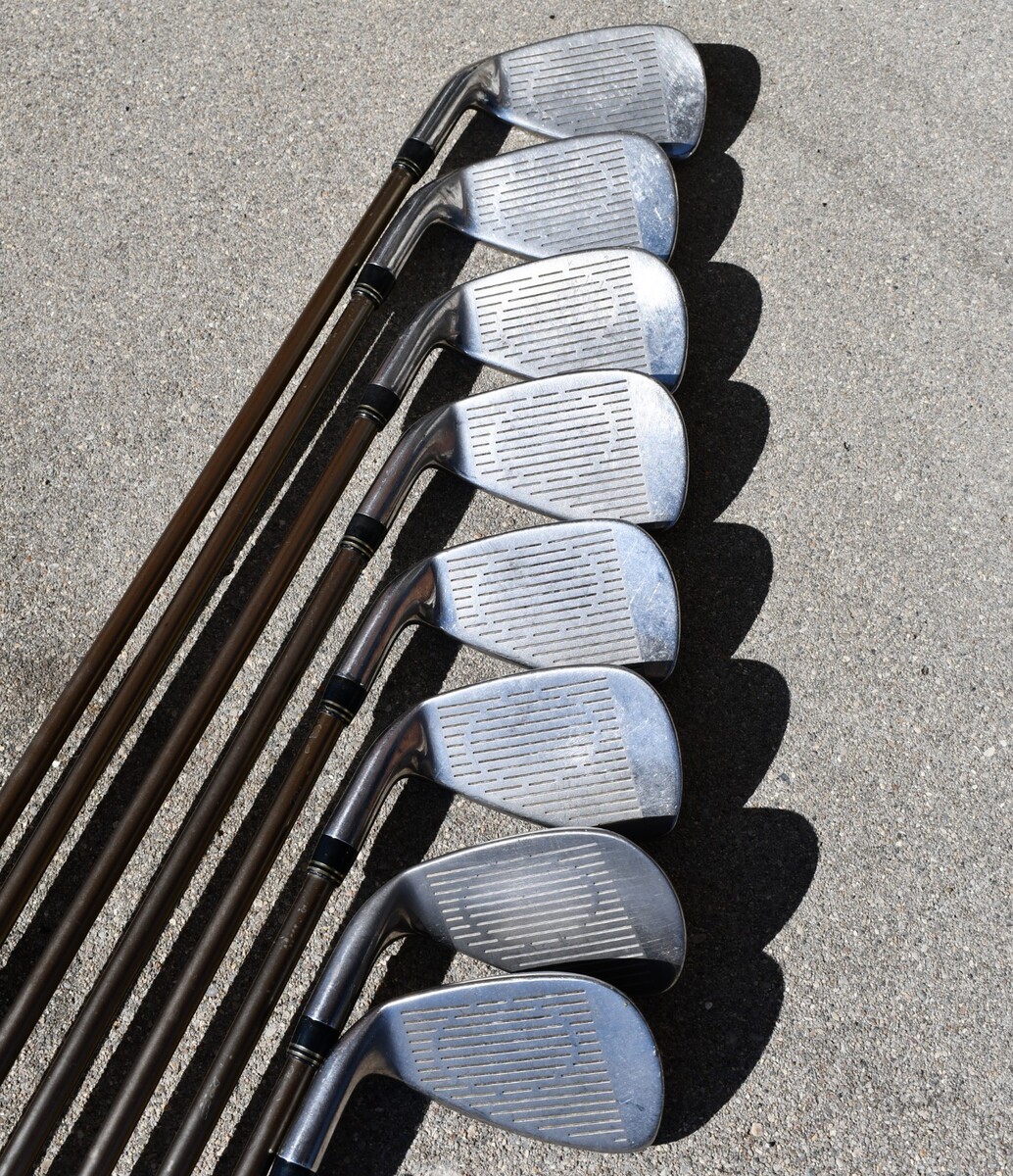 The King Cobra SS Oversize Full Set Golf Irons 4-SW are high-quality, stainless steel golf clubs designed for right-handed male golfers. This set includes 8 clubs with a low kick graphite shaft for added power and control. The Crossline Lamkin grips are in great shape. The sleek silver color and blade head shape give these irons a stylish and classic look on the golf course. With a standard lie angle and U.S. origin, these Cobra irons are sure to enhance any golfer's game. These clubs do have some wear but they look to be in relatively great shape as shown in the photos.