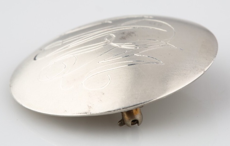 Beautiful Round Sterling Silver Pin w/ Flourished Script Engraving