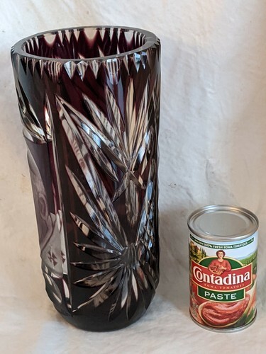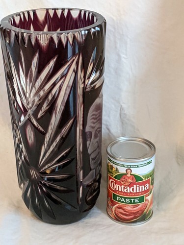 Up for sale is a used Pope John Paul II Bohemian Cut Etched Crystal Red Ruby Vase
