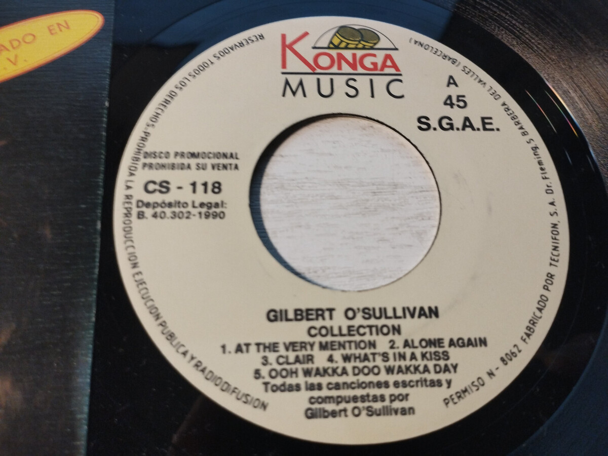 Collection Gilbert Osullivan 1990 Konga - Single LP Vinile 7 "VG / VG