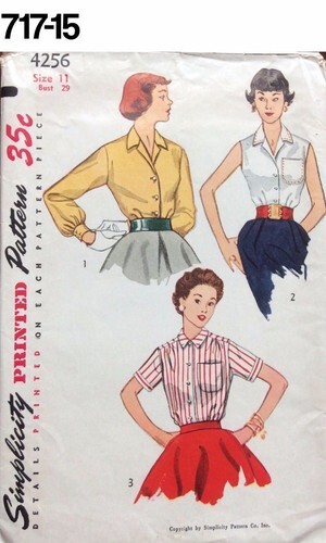 VTG 1950s Sewing Pattern Simplicity #4256 Size 11 Bust 29 Blouse Womens