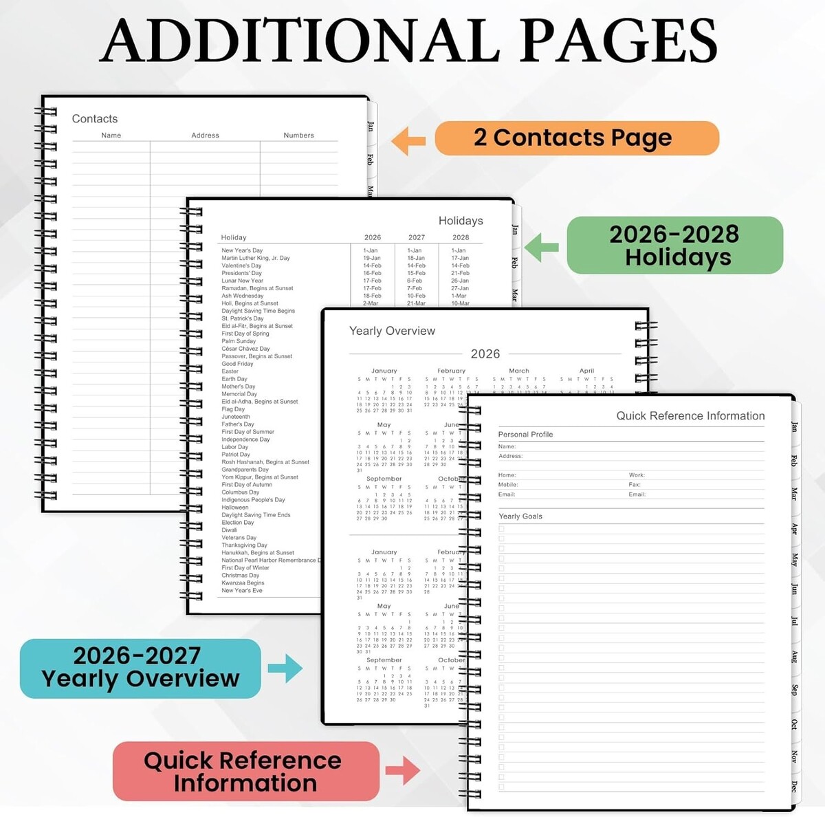 Stylish and Spacious 9" x 11" with Holidays Reference