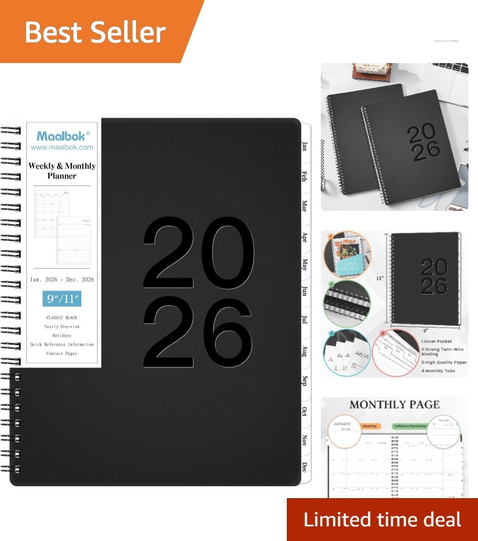2026 Weekly & Monthly Organizer - Spacious 9" x 11" with Holidays Reference