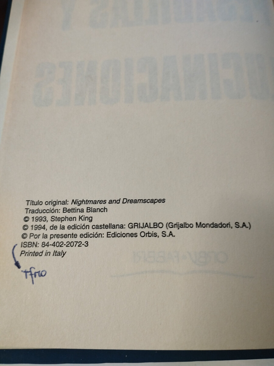 Nightmares and hallucinations STEPHEN KING 1994 Orbis Fabri - Spanish Book