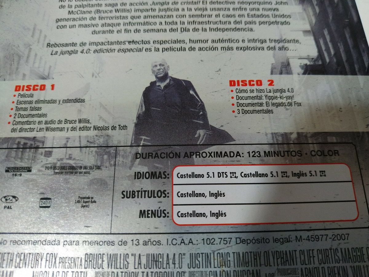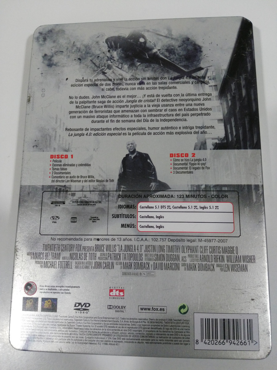 THE jungla decristal 4.0 DIE HARD 4.0 - 2 DVD STEELBOOK ESPAÑOL ENGLISH