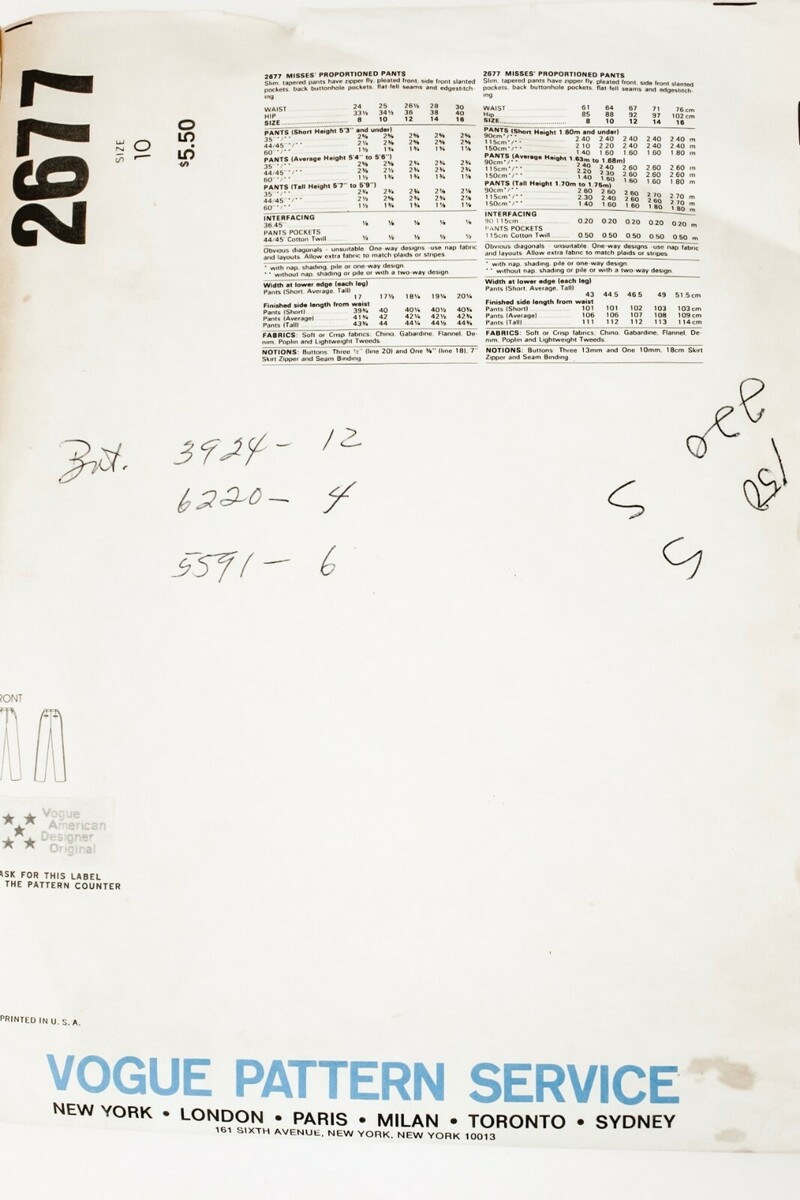VTG 1980s Vogue PERRY ELLIS Designer Pattern 2677 Proportioned Pants Size 10