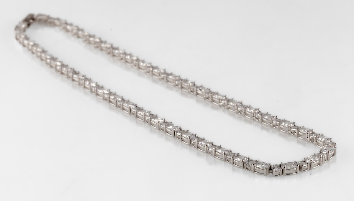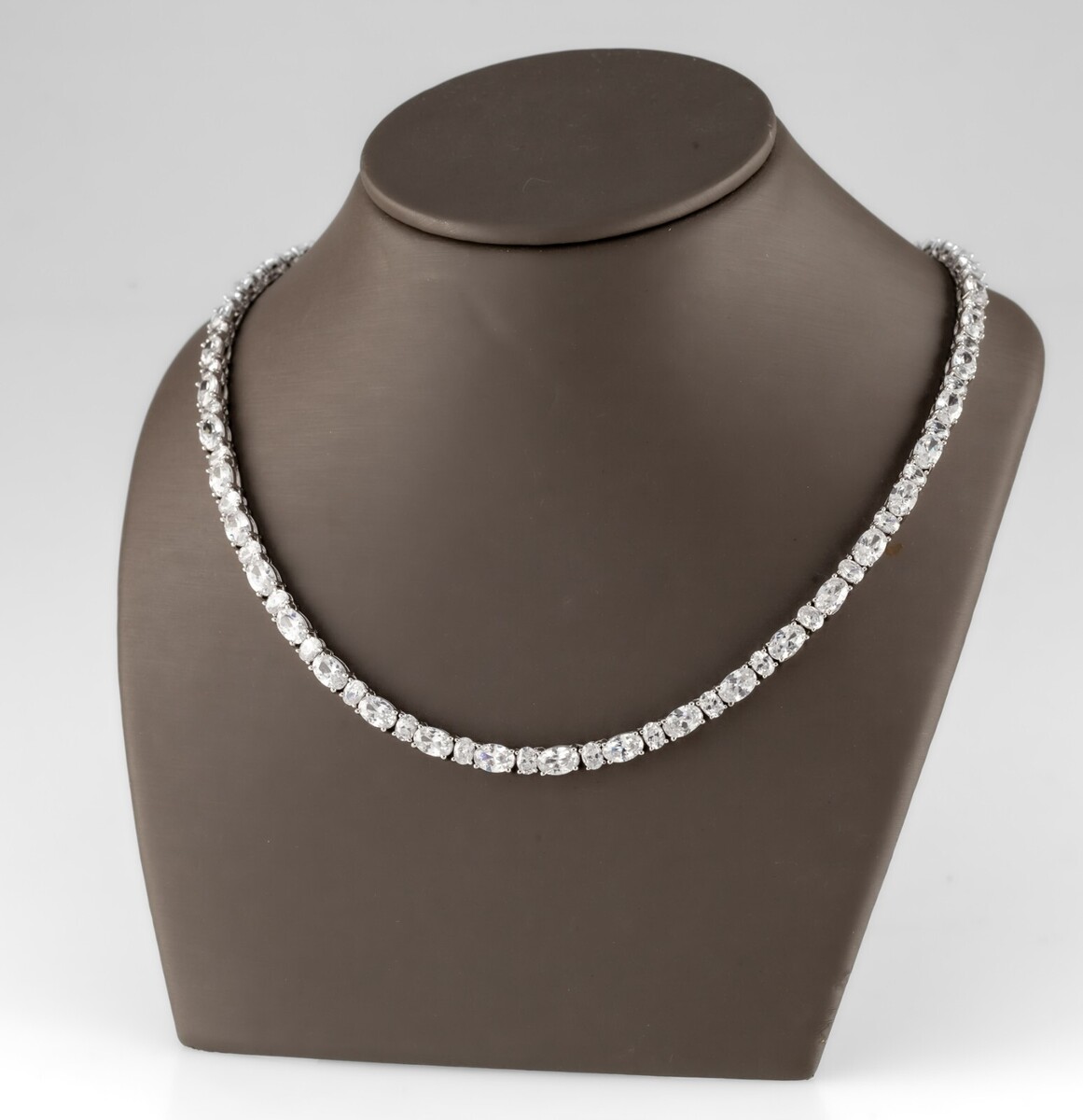 Beautiful Tennis Necklace Featuring Alternating Oval and Round Cubic Zirconia