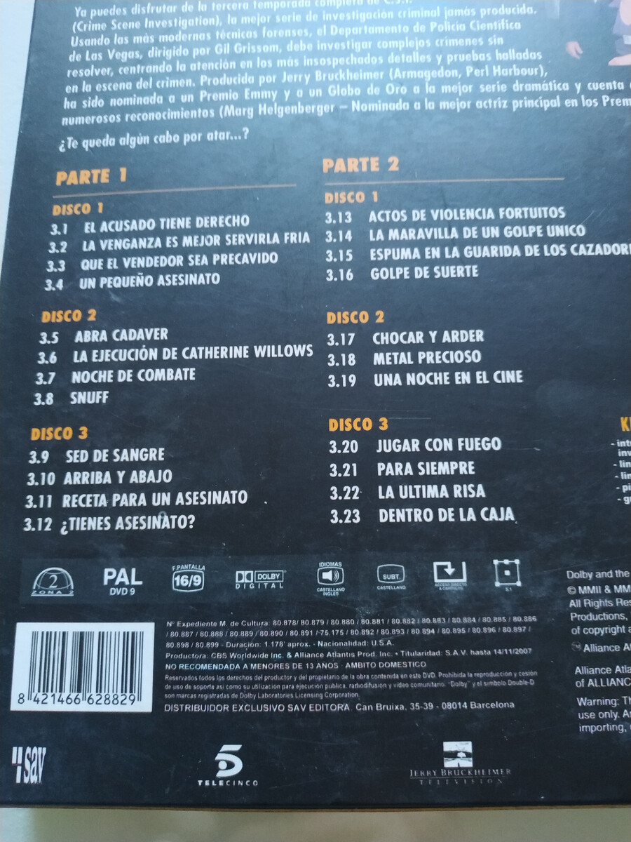 CSI Las Vegas Complete Third Season Large Box - 6 X DVD Spanish English Am