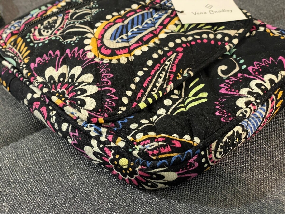 Vera Bradley Small Quilted Crossbody Bag Black Floral Paisley NWT Adjustable