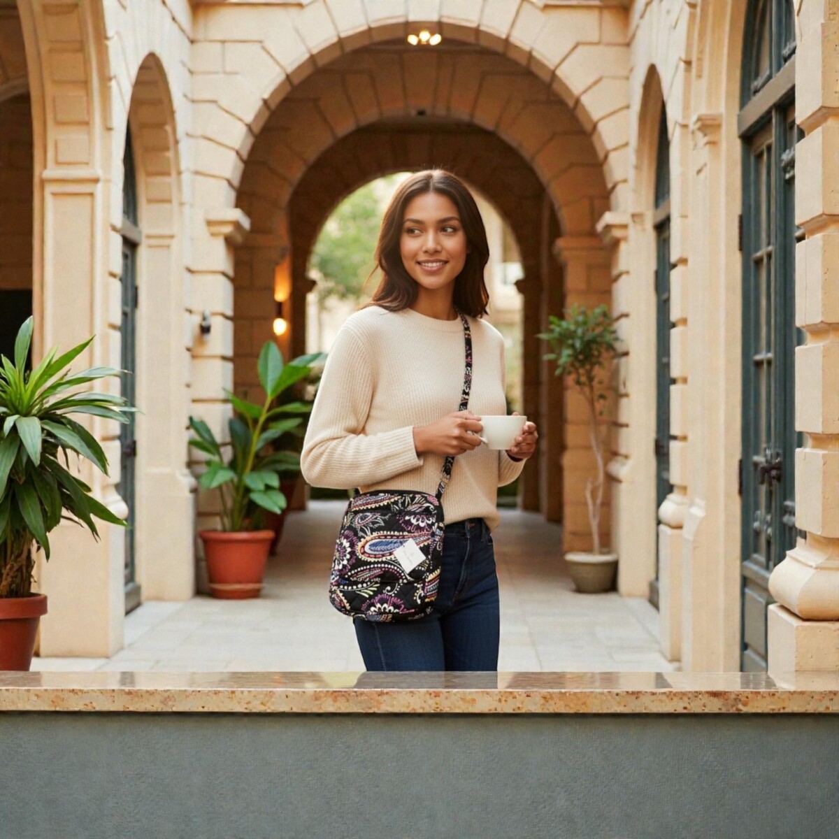 This lightweight quilted cotton bag is perfect for everyday use, travel, concerts, errands, or hands-free convenience. Compact yet functional, it features multiple compartments to keep essentials organized while maintaining a slim profile.