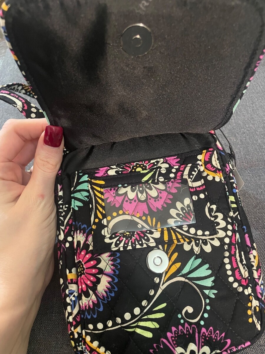 Brand new with tags Vera Bradley small crossbody organizer in classic black floral paisley print.