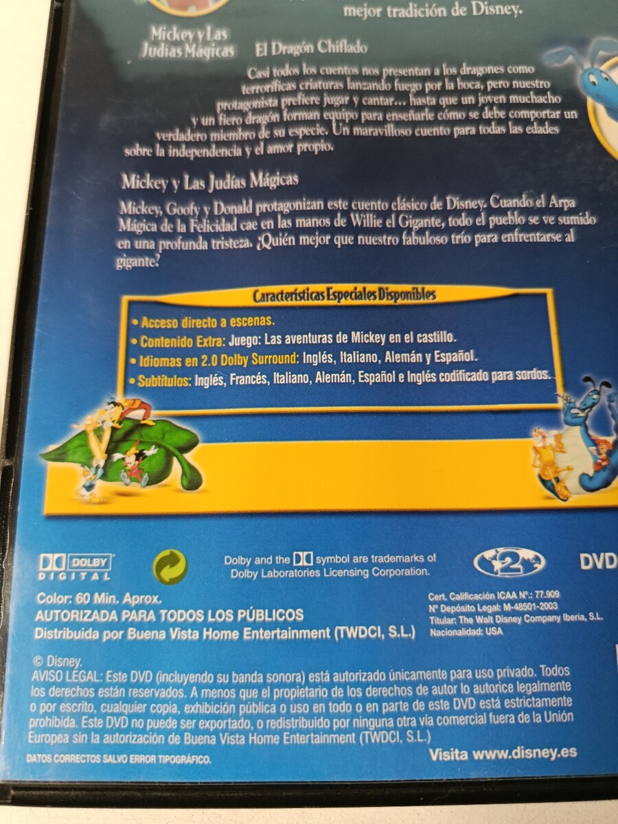 mickey mouse, mickey and the magic beans, crazy dragon , disney fables, classic disney dvd, classic animation, disney shorts, infantil dvd, vintage disney, region 2 Please, si upon receiving el itemno are you satisfiedcon your status, contact usantesde leave neutral or negative feedback. We will resolve any problem quickly and con personalized attention. We are based in Spain and offer carefully curated items: vinyl records, VHS