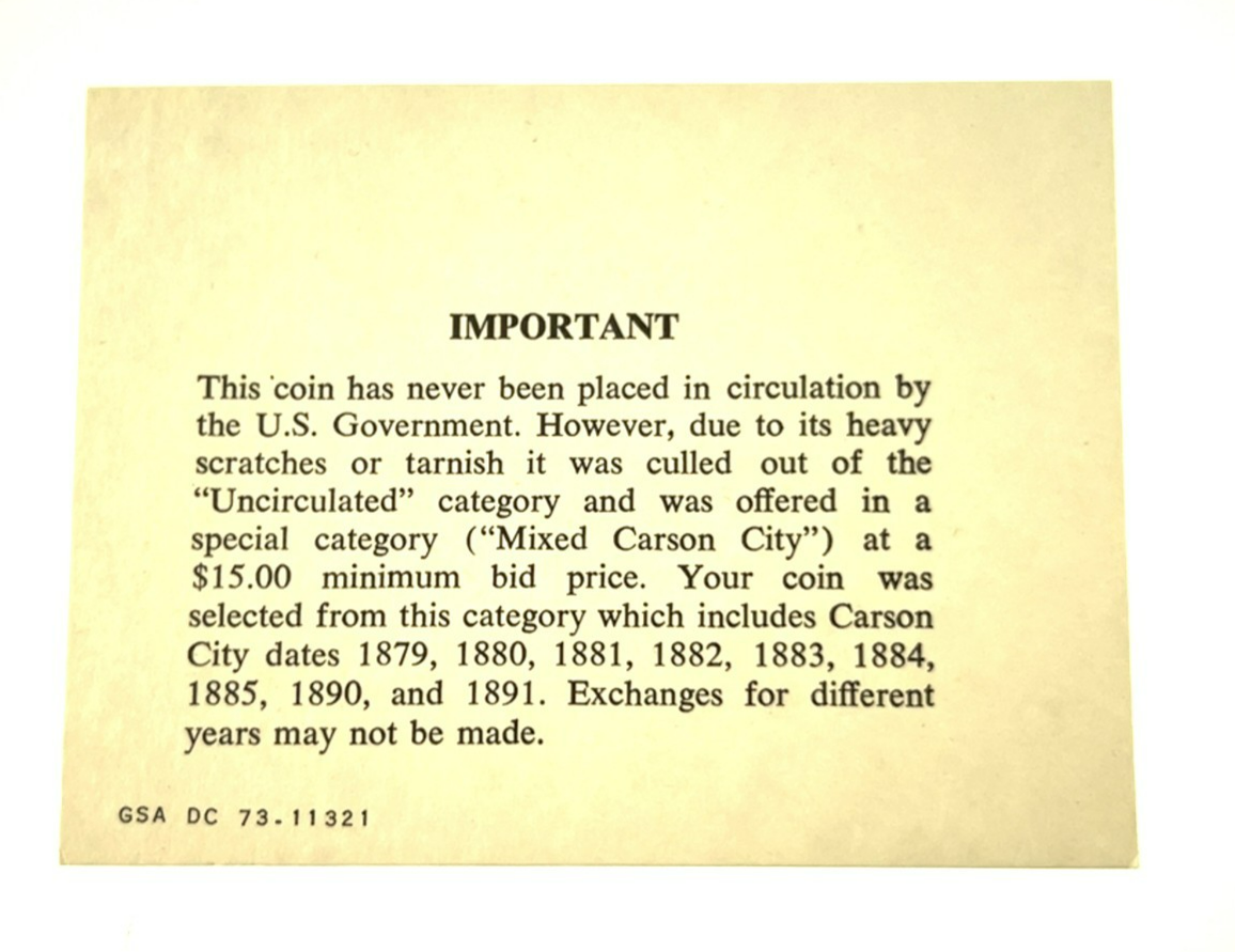1883-CC GSA S$1 Morgan Silver Dollar w/ Box and Papers