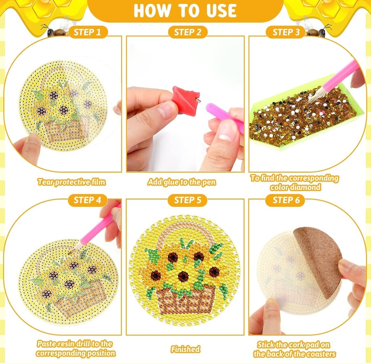 Transform your mundane coasters into vibrant conversation starters. Don?t miss out on this unique experience?order your Compact Bee Diamond Painting Coaster Set today and start crafting your chic decor!