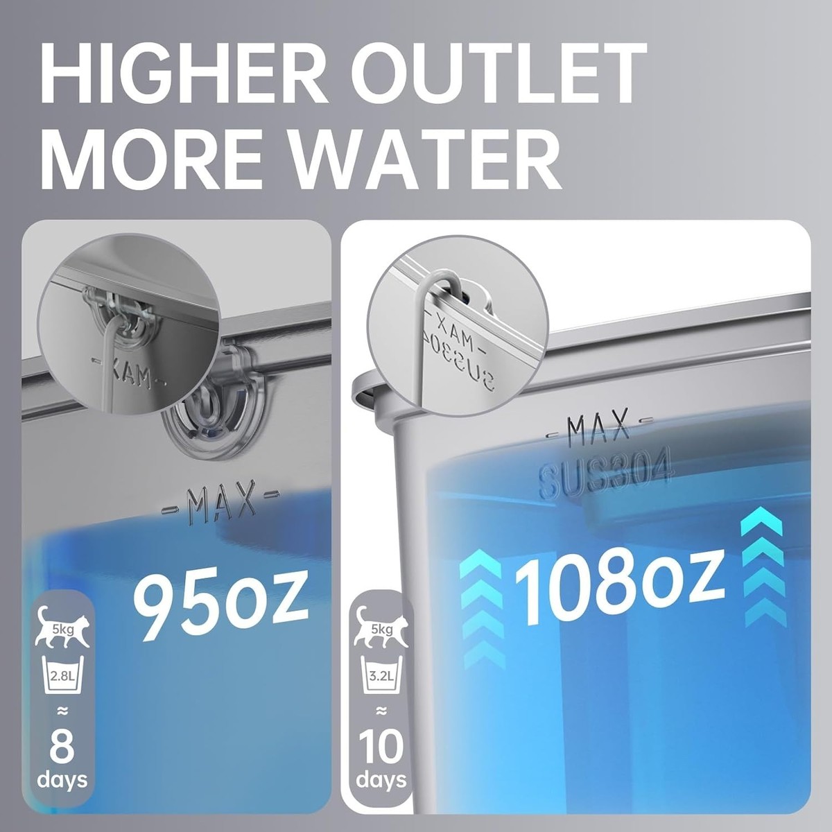 Spacious 108 oz (3.2 L) Capacity: Provides an ample supply of fresh water, minimizing the need for frequent refills.
