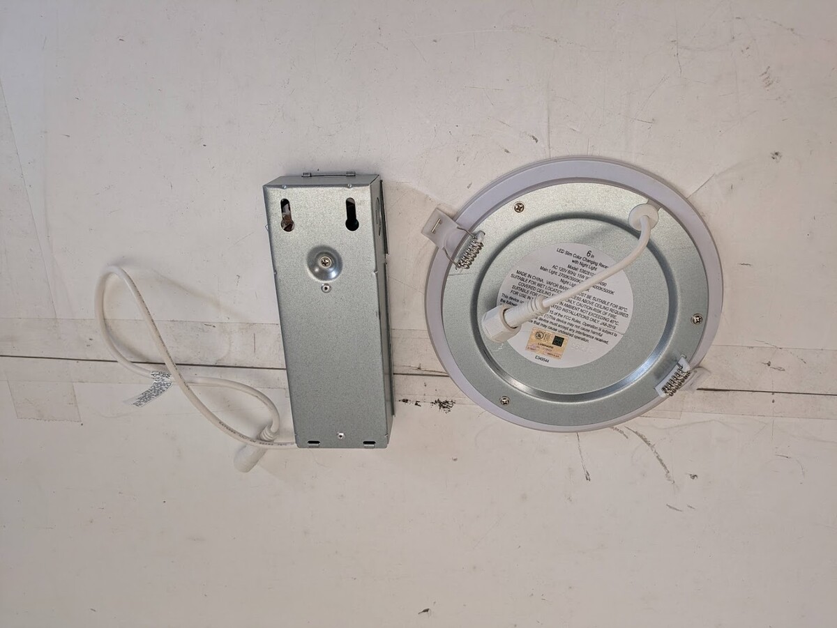 Elevate your space by upgrading existing recessed lights into an energy-efficient LED fixture with Commercial Electric 6in. LED Recessed Downlight. This canless, ultra-thin design easily installs into low clearance or sloped ceilings, no need for can or joists; ideal for new construction and retrofit mounting. Prior to installation, select between five color temperatures of light output from Warm White to Daylight for a variety of decorative, task or general lighting schemes in your home and workspace. It is also wet rated; great for bathroom, shower, pool, deck, and under soffits. With a flick of the wall switch, turn on the Night Light feature to illuminate an Amber glow around the fixture creating warm ambient lighting. Great for your kitchen, bedrooms, bathrooms, hallways, living room, office/den, basement, retail, sunroom, covered patio or deck and much more.