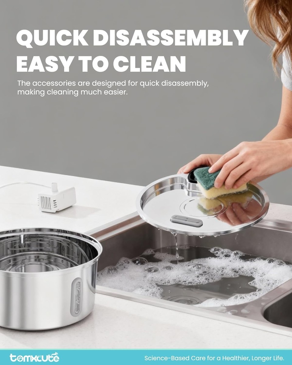 Automatic 3.2L Stainless Steel Cat Fountain - Cordless and Quiet Operation