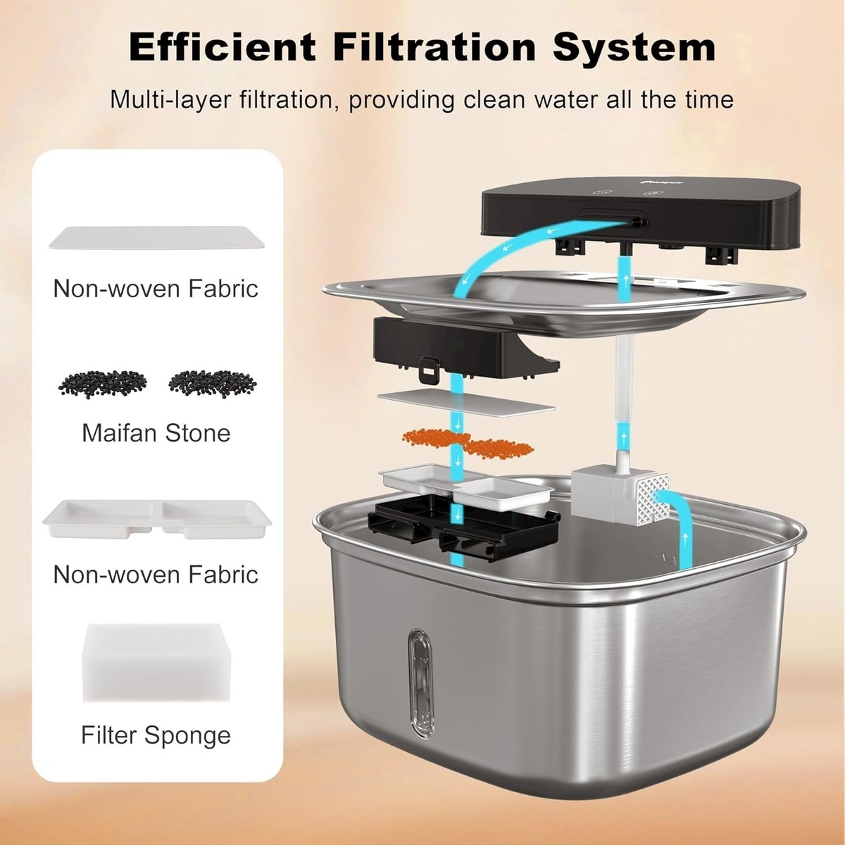 Cable, Filter, Stainless Steel Cat Water Fountain |