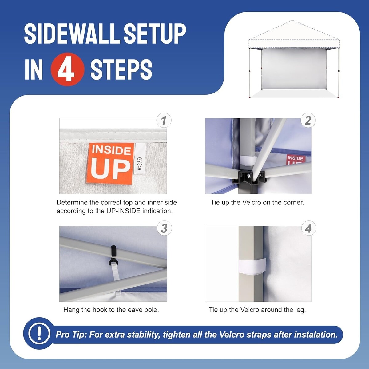 Waterproof 150D Polyester Sidewall for 10x10 Canopy Tent - Easy Hook & Loop