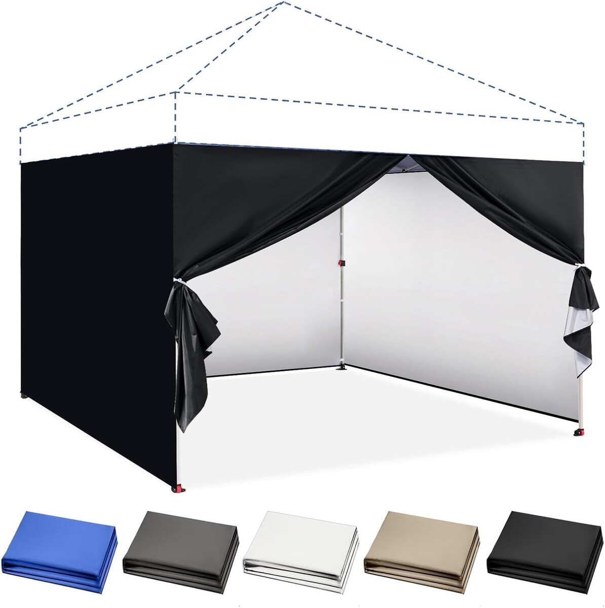 Each sidewall measures 6.5x10 ft, fitting most standard canopies.