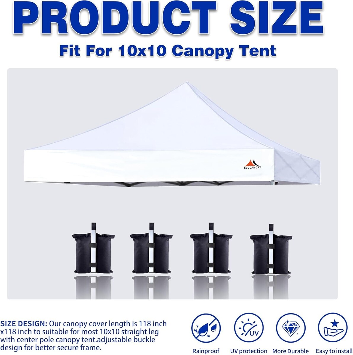 Waterproof 10x10 Canopy Replacement Top with 4 Weight Bags