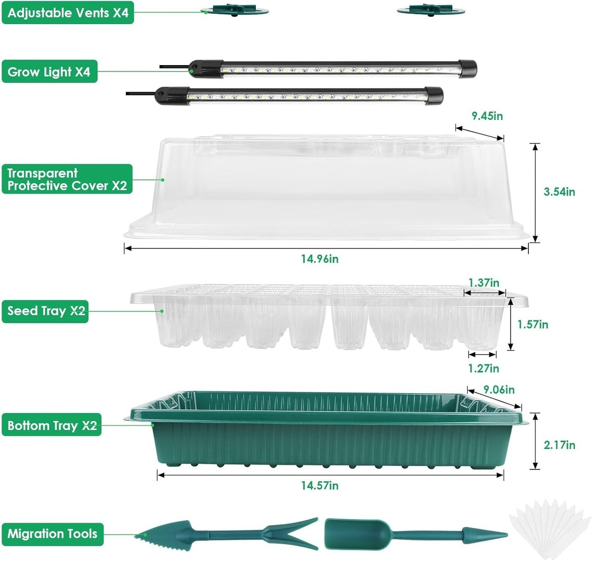 Spacious Seedling Starter Trays with Grow Lights – Perfect for Indoor Gardening