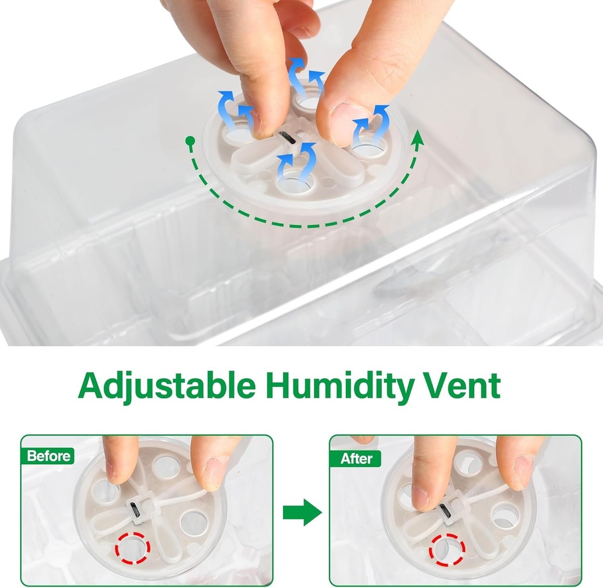 Complete Seed Starter Tray Set - 5 Clear Trays with Adjustable Humidity & LED