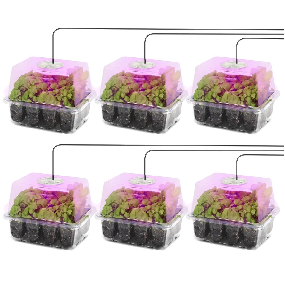 Eco-Conscious Seed Starter Kit with 12 Cells, Drainage Holes & Grow Light—6 Pack