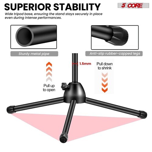5 Core Music Stand Adjustable Desktop Book Stands w Mic Holder Portable Sheet Ho