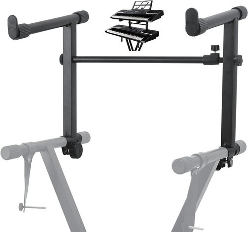 The durable black finish of the piano keyboard stand ensures that it will maintain its professional appearance, even with heavy use. And, if you want to take your setup to the next level, add the keyboard stand to your existing X-style keyboard stand to create another level of keyboard stand. With all of these features and more, this 2 tier keyboard stand is a must-have for any musician or producer looking to optimize their workspace.