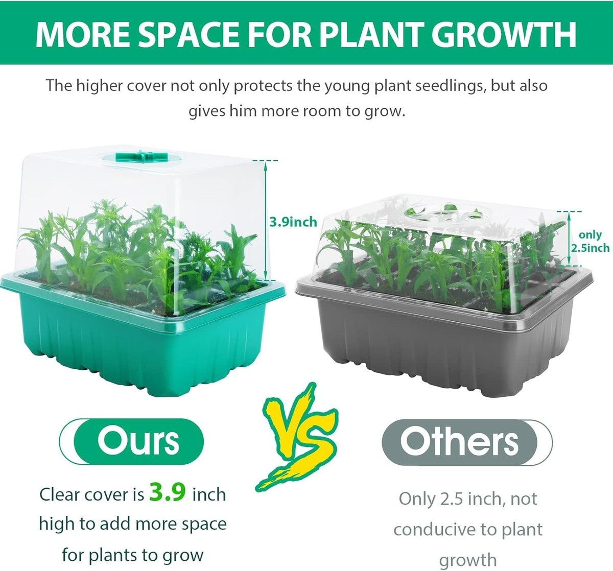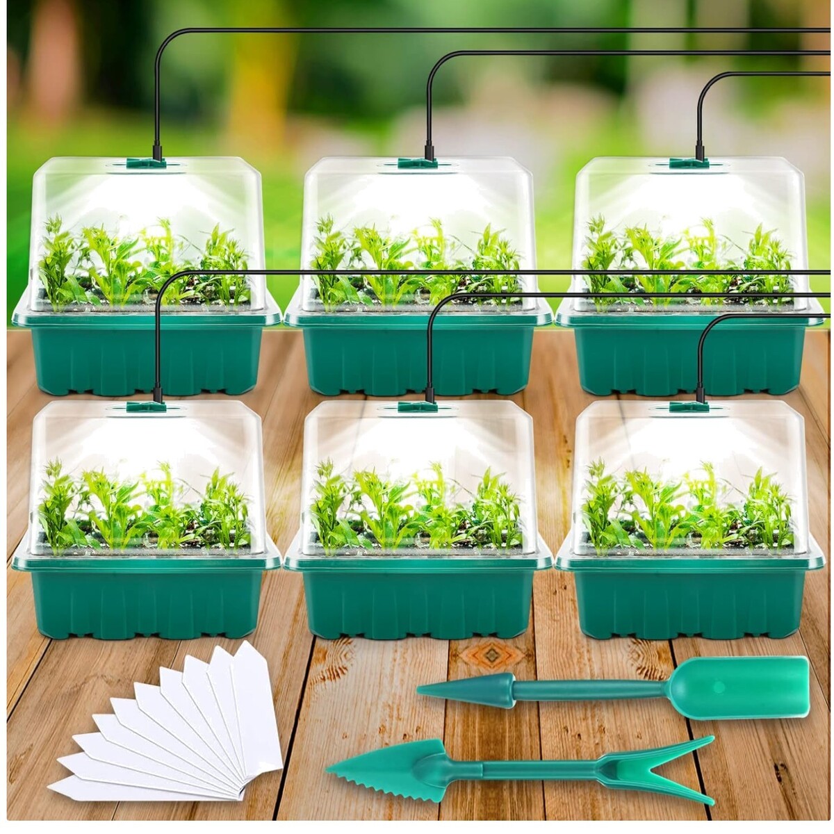 Durable Seed Starter Trays with Grow Light & Adjustable Humidity Control - 6PK