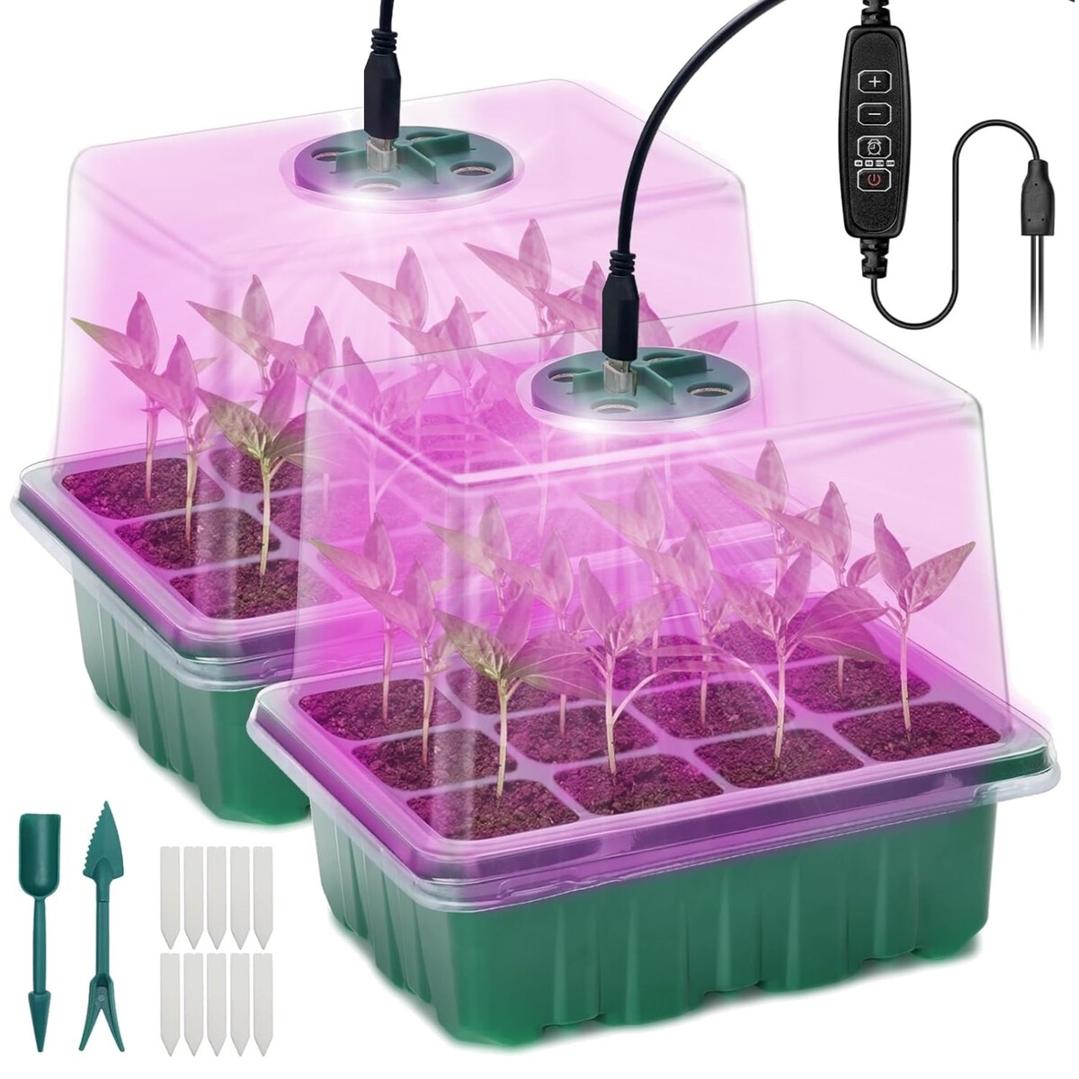 2-Piece Seed Starter Kit with Grow Light & Humidity Dome for Indoor Gardening