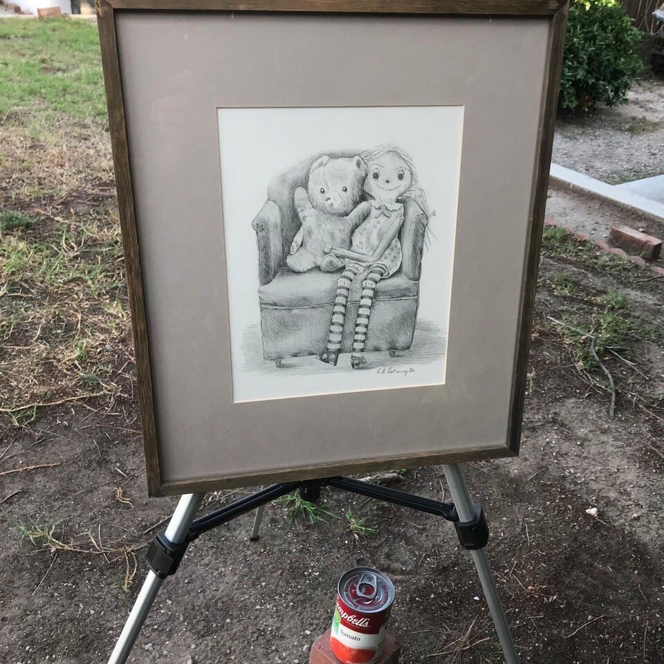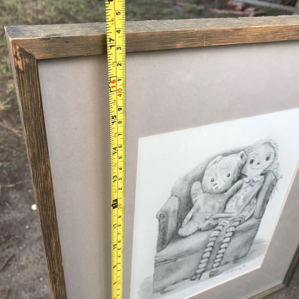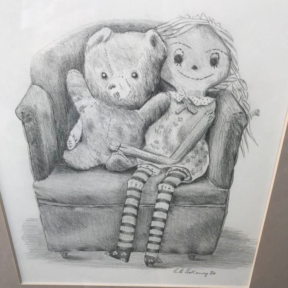 EDGAR HOLLOWAY Original 1984 MODERN VINTAGE 'Doll & Bear' SIGNED PENCIL DRAWING