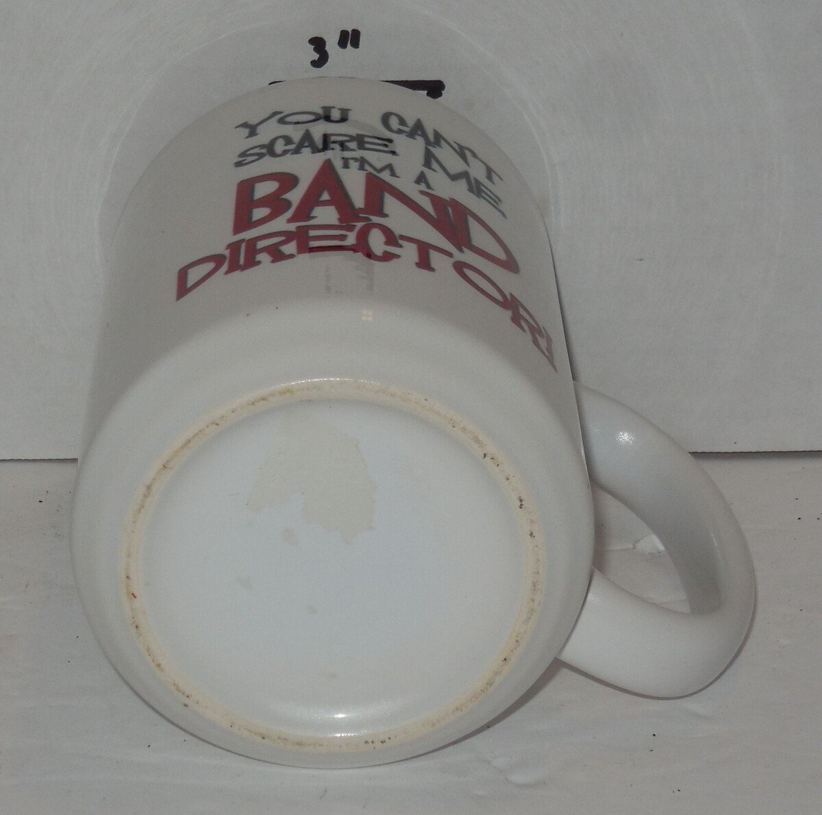 For Sale is a rare and hard to find "You Can't Scare Me I'm a Band Director" Coffee Mug Cup Ceramic. its In good USED Condition as pictured. Please ask Any and All Questions prior to purchasing. Fast Same or Next day shipping with Free Delivery Confirmation within the U.S. Payment Due within 7 days of purchase (if you need more time please let us know In advance) we love to combine shipping is always a Yes and Most of the time Additional Items Ship for free. SKU4MS