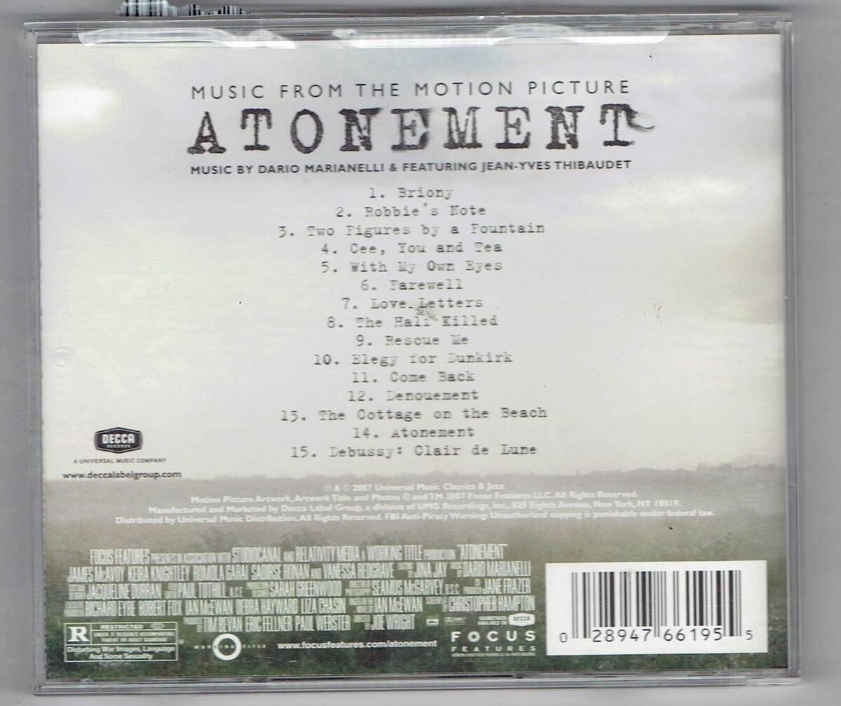 For Sale is a Atonement [Music from the Motion Picture] by Dario Marianelli (Music CD) Rare OOP. In good USED condition comes as pictured. Please ask Any and All Questions prior to purchasing. Fast Same or Next day shipping with Free Delivery Confirmation within the U.S. Payment Due within 7 days of purchase (if you need more time please let us know In advance) we love to combine shipping is always a Yes and Most of the time Additional Items Ship for free.