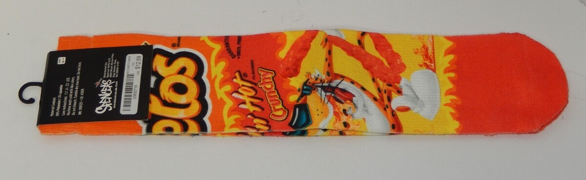 Spencers Cheetos Flammin Hot Crunchy Crew Socks Size 10-13 NWT