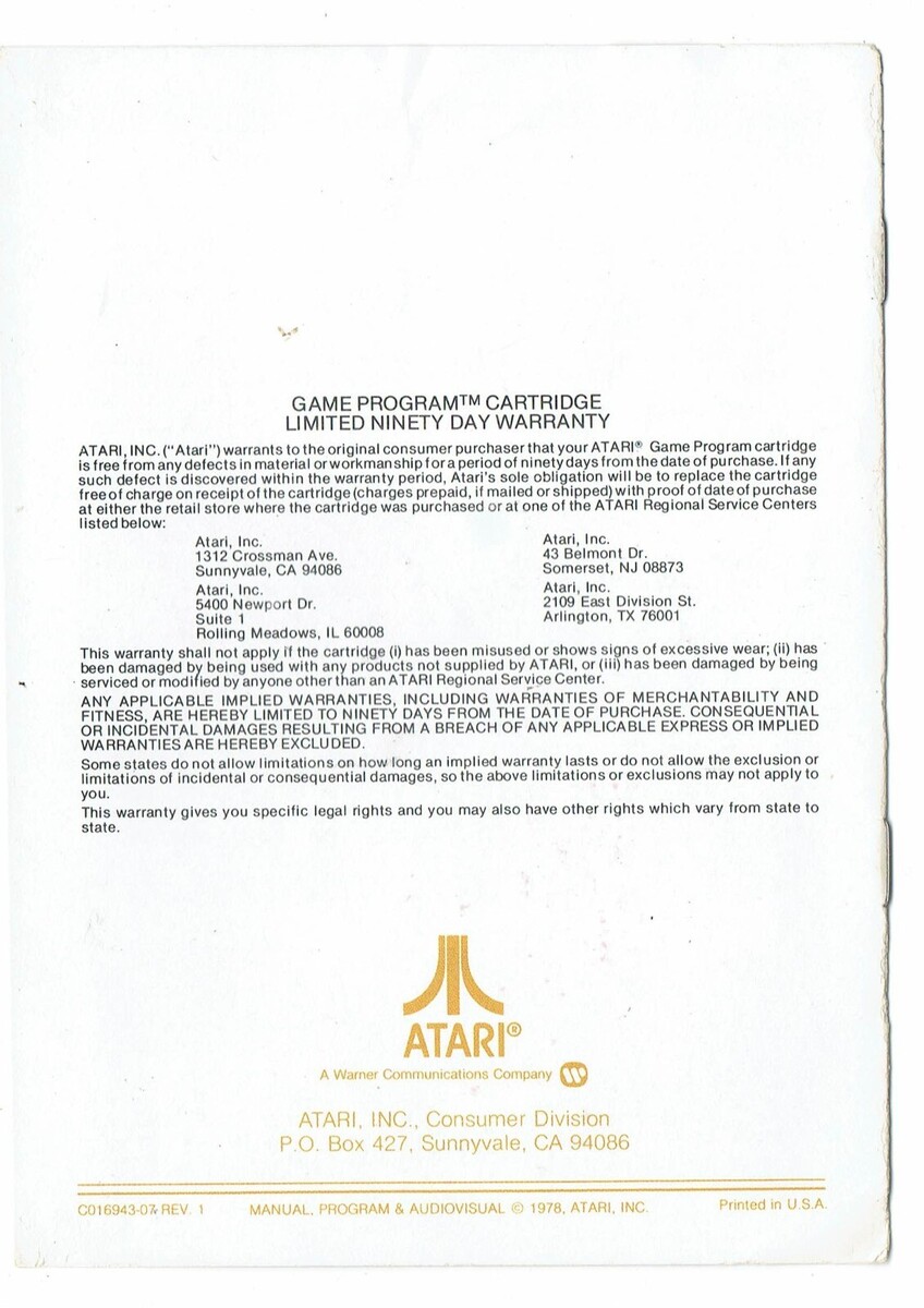 Atari Canyon Bomber Instruction Manual ONLY and 50 similar items