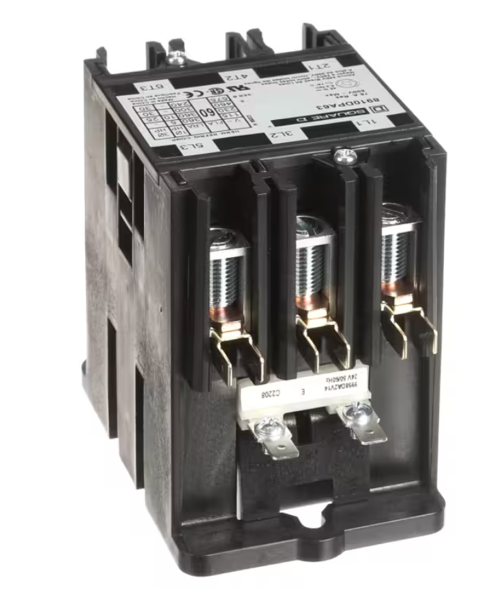 The AAON 8910DPA63 Contactor is a heavy-duty 3-pole electrical contactor featuring a 24V coil and rated for 60 Amps. Designed for reliable high-current switching in commercial HVAC and mechanical systems, this OEM component ensures stable electrical engagement and efficient load control. Engineered for demanding environments, the 8910DPA63 3-Pole Contactor delivers consistent performance, protects critical electrical circuits, and supports long-term operational reliability. Ideal for repair or preventive maintenance, this contactor restores safe and dependable equipment functionality.